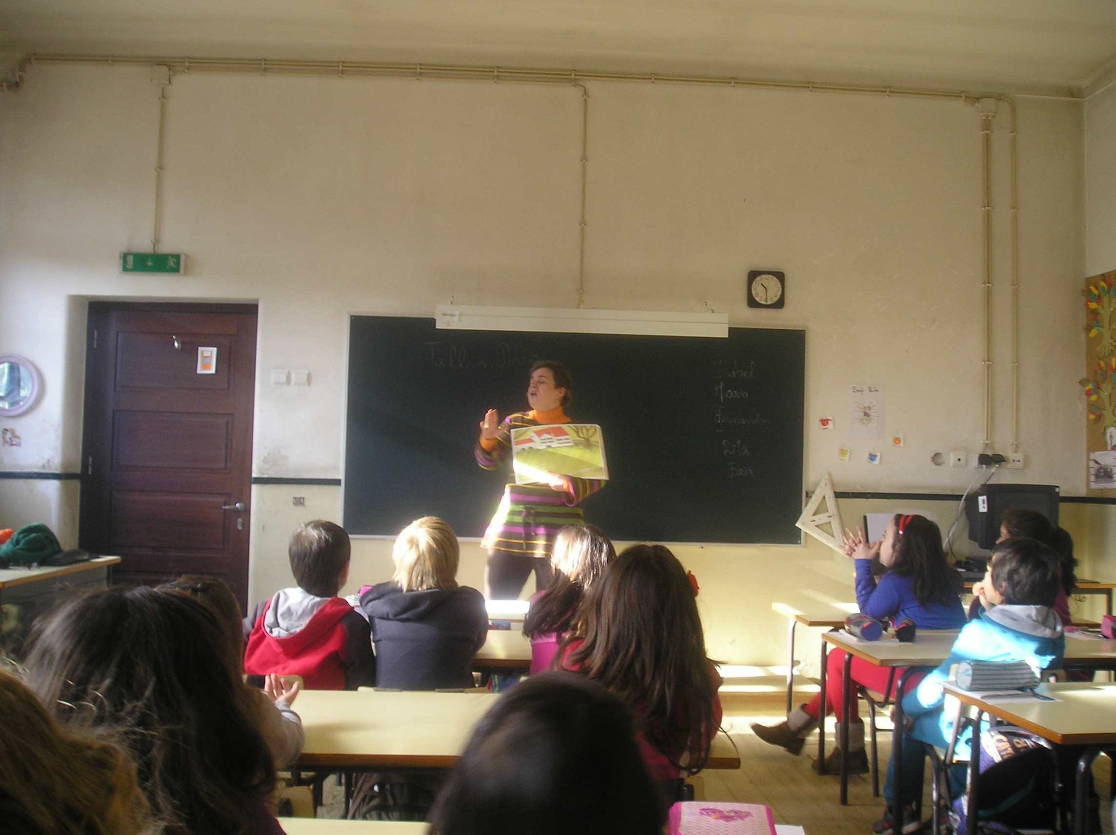 A história "A Inês e a Galinha Pedrês que sabia contar até três e falava "olarês" foi contada e explorada. Foram realçados os nomes de muitos objetos em barro, muitos deles em desuso, e explicada a sua utilidade. Segiu-se uma sessão de divulgação do Museu de Olaria de Barcelos, com um trabalho de pintura de um pequeno alguidar.